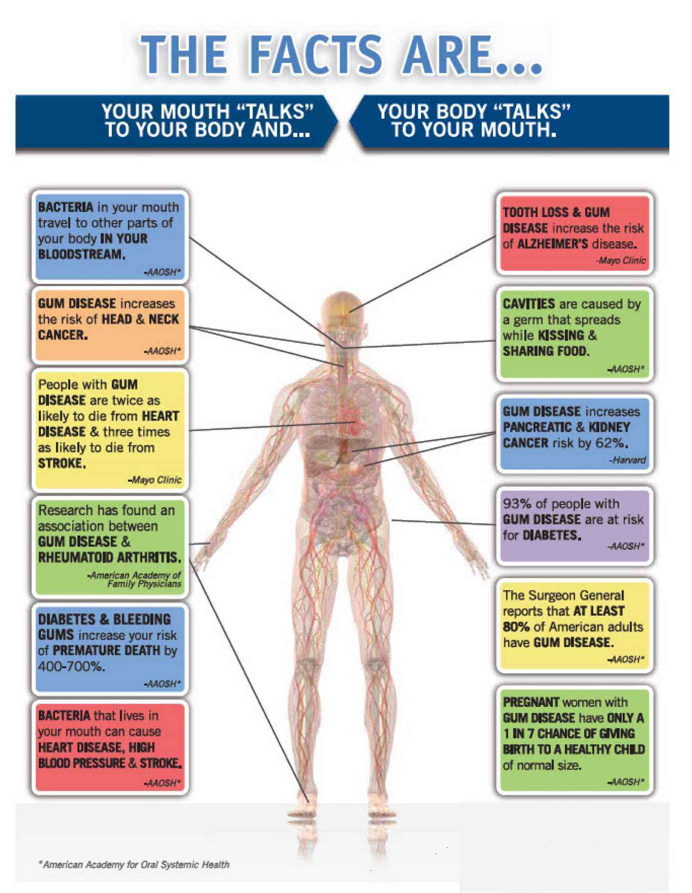Interrelatia existenta intre starea de sanatate a cavitatii bucale si a corpului in ansamblu este deja o certitudine in ziua de azi, studii de specialitate de amploare subliniind mecanismele prin care se influenteaza reciproc.